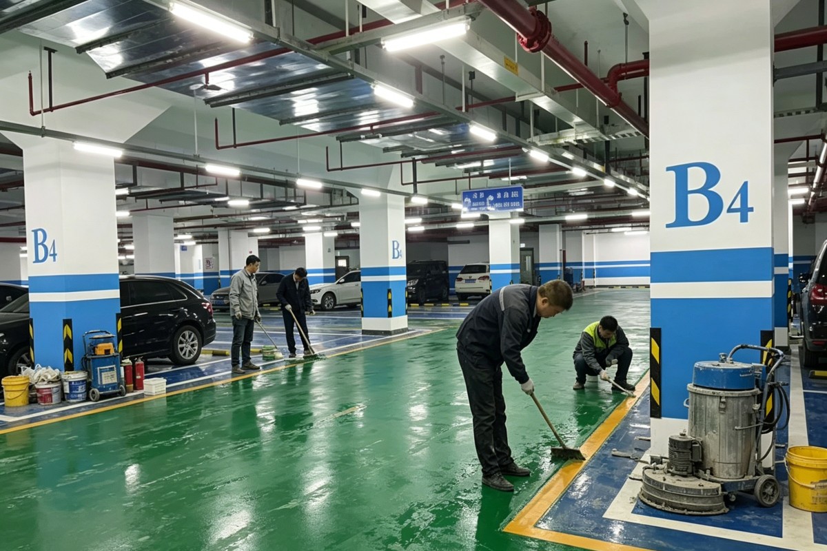 临汾洪洞堤村乡车库停车场环氧地坪施工厂家